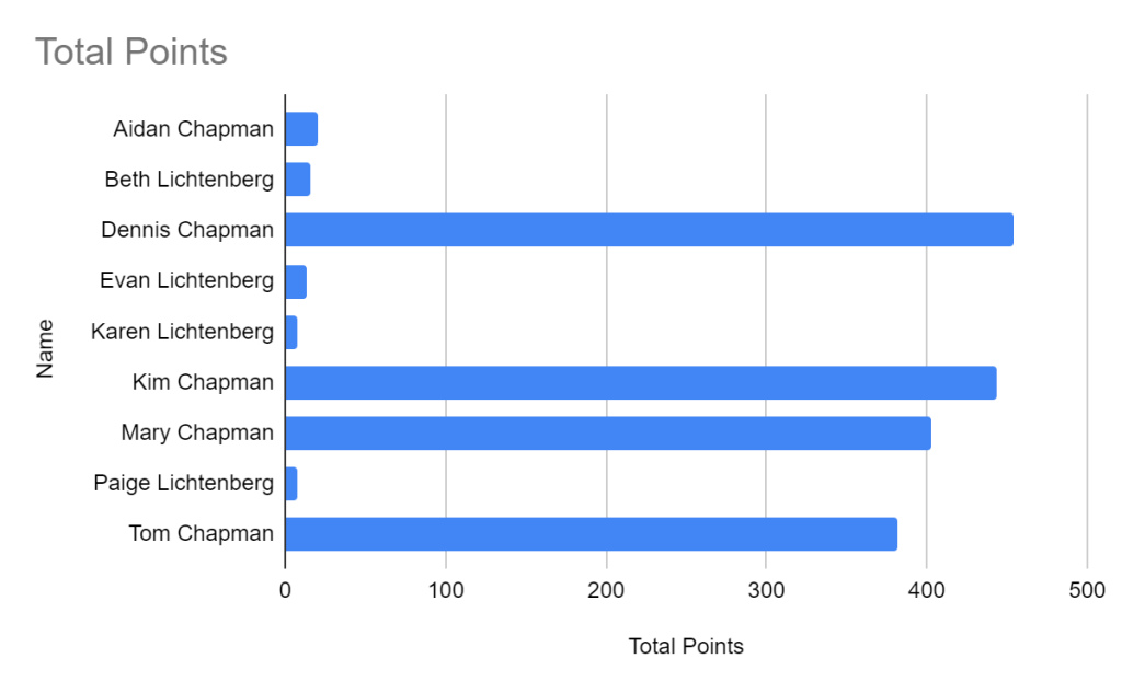 And the winner is Mary…again. She is dominating the Chapman Challenge.